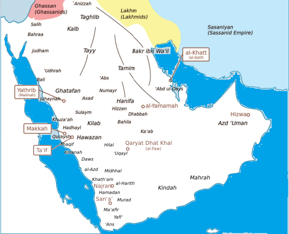 3. Bangsa Arab Musta’ribah (disebut juga Banu Ismail, keturunan Ismail AS) mereka disebut juga dengan Adnaniyyun menurut nama salah satu cucu Ismail AS yaitu Adnan. Diantara kabilah mereka yang terkenal adalah Rabi’ah, Mudlar, Iyad dan Nizar. Kabilah Rabi’ah terpecah menjadi kabilah Bakr dan Taghlib. Mudlar menjadi Quraisy, Kinanah, Qais, Tamim dan Huzail.